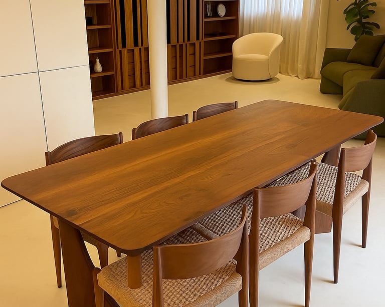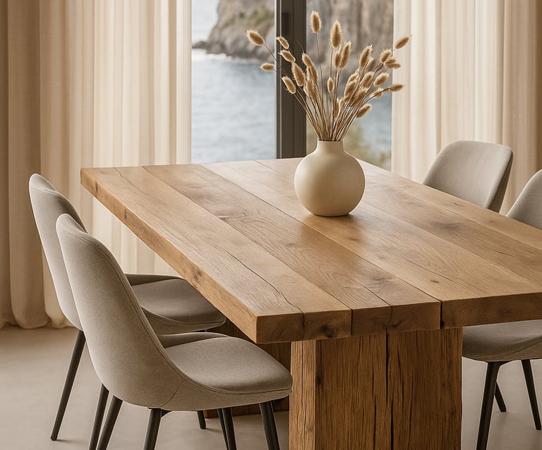 En DeRaices Decor creemos que la madera tiene alma propia: vetas, texturas y colores que hablan de su origen y que convierten cada mesa en una pieza irrepetible.