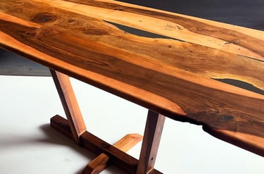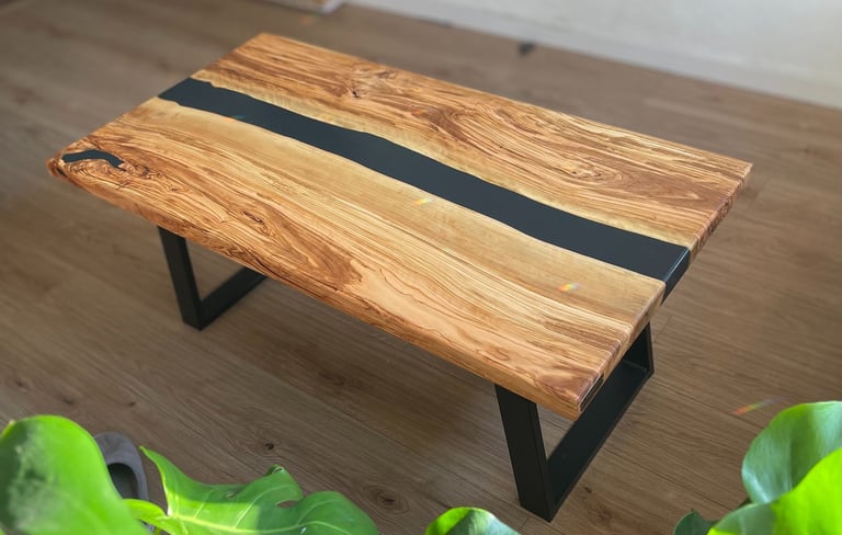 Cada mesa se diseña a medida, eligiendo cuidadosamente la pieza de madera y el estilo de resina que mejor refleje tu personalidad y tu espacio. Desde tonos profundos y elegantes hasta transparencias sutiles que realzan la veta natural, la combinación de materiales convierte a cada mesa en una obra de arte irrepetible.